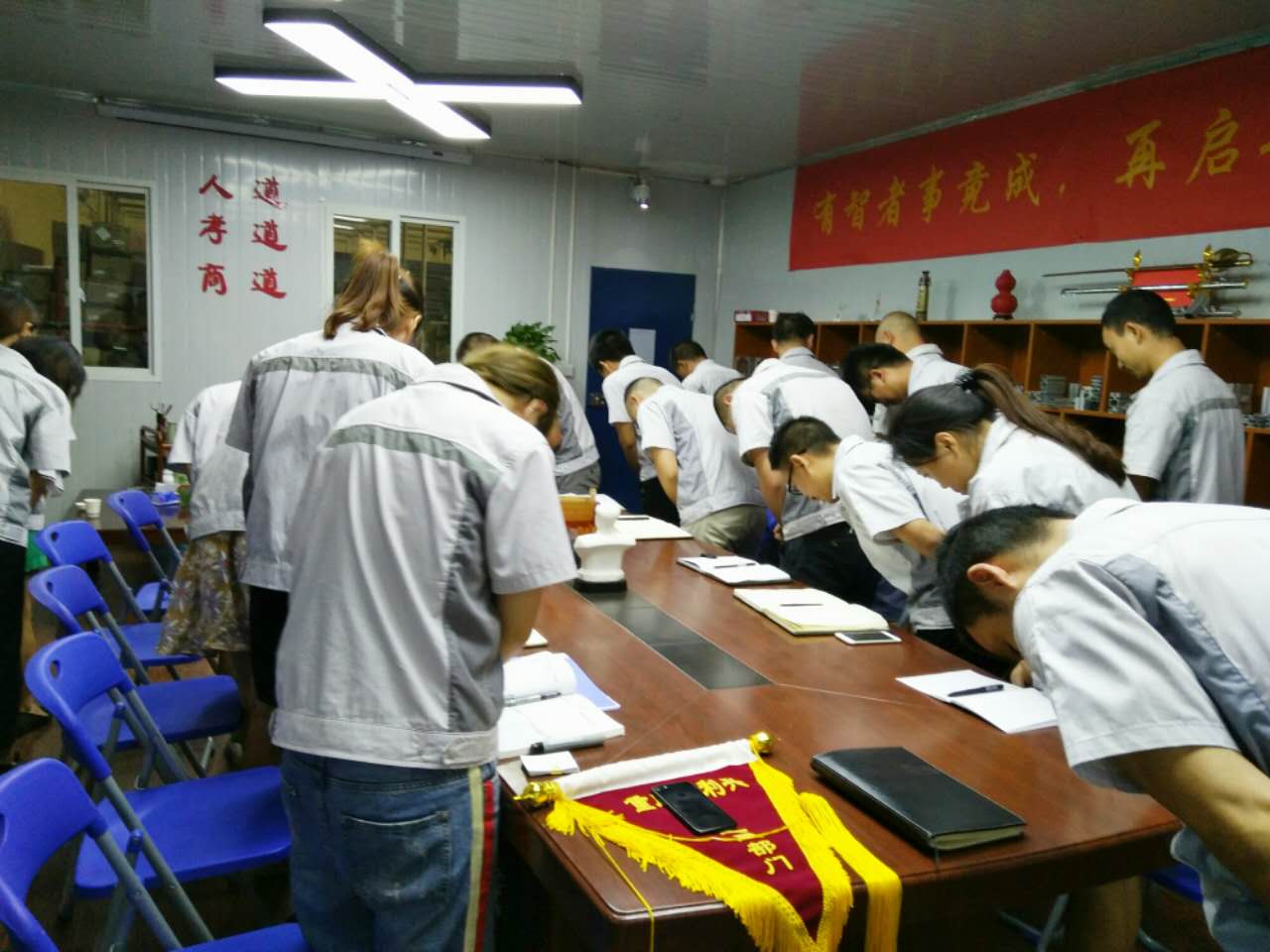 2017年8月1日晚,我司全體人員在匯興學(xué)校召開(kāi)七月月度大會(huì),依次由自我價(jià)值稱(chēng)估稱(chēng)及簽到入場(chǎng)。大會(huì)召開(kāi)前,全體人員對(duì)企業(yè)三道(人道、孝道、商道)行三鞠躬,隨后進(jìn)入會(huì)議主題。
