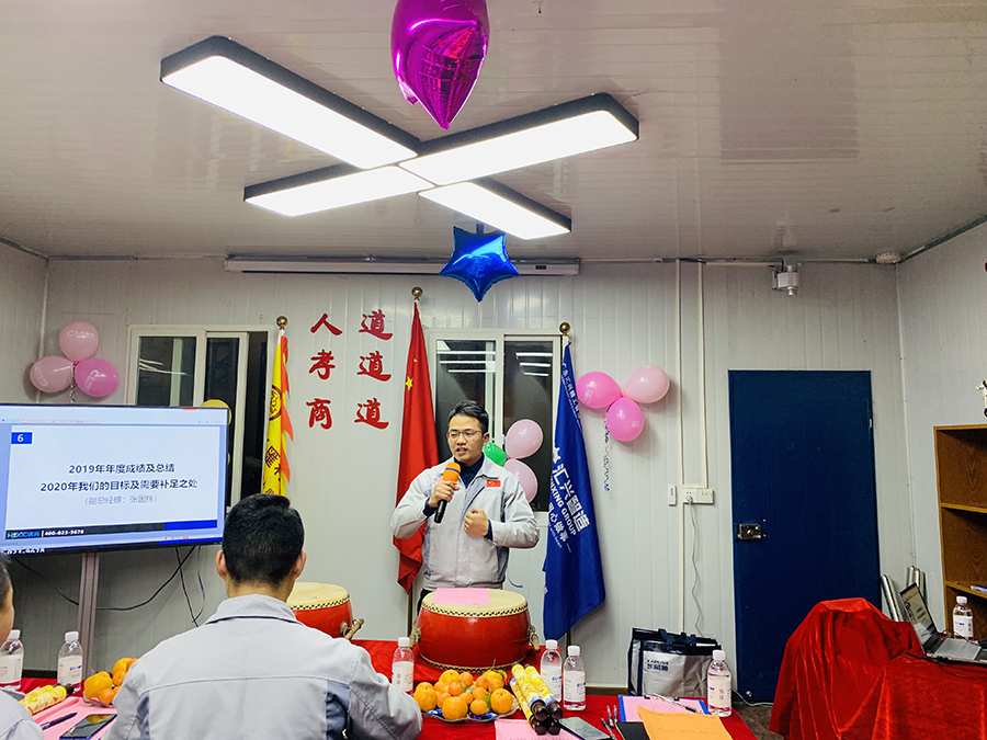 會(huì)議第二項(xiàng)議程,胡總經(jīng)理做2019年工作總結(jié)暨2020年工作規(guī)劃。胡總談到,2019年是充實(shí)且忙碌的一年,在這一年我們實(shí)現(xiàn)了企業(yè)規(guī)模的跨越,成功入駐西彭標(biāo)準(zhǔn)工業(yè)園,同時(shí)強(qiáng)調(diào)在2020年,經(jīng)濟(jì)下行的市場(chǎng)環(huán)境下,可以預(yù)料和難以預(yù)料的風(fēng)險(xiǎn)挑戰(zhàn)會(huì)更多更大,因此全體人員必須提高戰(zhàn)斗意識(shí),做好打攻堅(jiān)戰(zhàn)的準(zhǔn)備,切實(shí)抓好開源節(jié)流各項(xiàng)工作,確保公司實(shí)現(xiàn)經(jīng)營(yíng)指標(biāo)的跨越,完成整體團(tuán)隊(duì)目標(biāo)。胡總談到,在面對(duì)充滿挑戰(zhàn)的2020年,我們需要腳踏實(shí)地走穩(wěn)每一步,全力以赴為公司添彩,為匯興智造集團(tuán)20周年華誕獻(xiàn)禮。